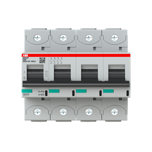 <p>When selecting a Miniature Circuit Breaker (MCB) for industrial or commercial applications, the S800P series stands out as a robust choice. Designed to handle demanding electrical environments, this MCB offers reliability and efficiency.</p><p>First, let&#39;s focus on its electrical specifications. The MCB has a rated current of 80 A, making it suitable for high-demand circuits. It operates effectively at both 400 VAC and 690 VAC, providing flexibility across different voltage systems. With a rated impulse withstand voltage of 6 kV and an impressive breaking capacity of 50 kA, this device is engineered to safeguard against overcurrents and short circuits efficiently.</p><p>The physical dimensions are compact yet sturdy: with a width of 106 mm, height of 95 mm, and depth of 82.5 mm. Weighing in at just over one kilogram (1.005 kg), it’s manageable for installation while being robust enough for industrial use.</p><p>Its four-pole design ensures comprehensive protection across phases in three-phase systems or multiple single-phase circuits. With an IP20 degree of protection, the device is safeguarded against solid objects larger than 12mm but should be installed in enclosures where higher degrees of ingress protection are required.</p><p>Installation is straightforward thanks to its DIN rail mounting type, which simplifies setup and maintenance within electrical panels. The tightening torque specification stands at 3.5 N-m ensuring secure connections that can withstand operational vibrations.</p><p>To meet various wiring needs, the connecting capacity accommodates flexible wires from 1-50 sq-mm and rigid wires from 1-70 sq-mm with a wire stripping length requirement of only 19 mm—streamlining connection processes.</p><p>Operating under temperatures ranging from -25&#176;C to +60&#176;C highlights its versatility across diverse environmental conditions—a crucial factor for installations exposed to variable climates or indoor/outdoor settings.</p><p>The S800P series adheres to stringent standards such as IEC/EN 60947-2 and UL1077 ensuring compliance with international safety norms—an assurance vital for peace-of-mind regarding equipment safety and functionality.</p><p>This MCB features Curve Type D characteristics ideal for protecting circuits with high inrush currents such as transformers or motors by allowing temporary surges without tripping unnecessarily—a critical feature in many industrial setups.</p><p>For those concerned about energy efficiency amidst performance demands—the power loss registers at just around 25.4 W demonstrating an efficient balance between operational capability and energy consumption—vital considerations when managing large-scale operations&#39; electricity costs effectively.</p><p>Overall if you’re seeking an MCB that combines durability precision engineering compliance flexibility within rigorous technical parameters then look no further than this offering from the S800P series perfect fit your professional needs without compromise!</p>