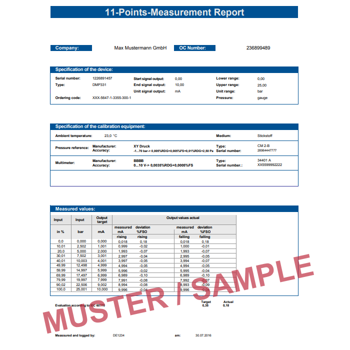 BD Sensors BDCAL11 Calibration Report
