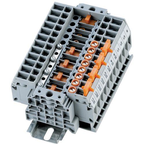<p>The kWh Meter Terminal Test Block is an essential component for professionals in the electrical and automation industries, designed with precision to meet rigorous industrial standards. This product offers a reliable solution for those seeking efficient and safe connectivity in metering applications.</p><p>With a compact width of 8 mm and a length of 82 mm, this test block is engineered to fit seamlessly into tight spaces without compromising functionality. Its grey color provides a neutral yet professional appearance suitable for various industrial settings.</p><p>Complying with IEC/EN60947-7-1 standards, this terminal block ensures adherence to international safety and performance guidelines. It supports a rated voltage of up to 800 V, making it robust enough for demanding electrical environments. The degree of pollution rating at IP3 indicates its capability to withstand moderate levels of dust and moisture, ensuring durability over time.</p><p>The mounting type is DIN Rail, which facilitates easy installation and integration into existing systems. The terminal employs a combination of screw clamp, sliding disconnect, and test mechanisms that provide versatility in usage while maintaining secure connections. With a cable cross-section range from 0.2 to 6 sq-mm, it accommodates various wiring needs effectively.</p><p>A tightening torque specification of 0.8 N-m ensures optimal clamping force without damaging the wires or terminals. The housing material made from polyamide offers excellent resistance against chemical substances and mechanical stress while being lightweight.</p><p>Operation is straightforward using a screwdriver interface compatible with M3.5 screws, simplifying both installation and maintenance tasks for technicians. Additionally, the rated surge voltage capacity stands at an impressive 8 kV, offering substantial protection against voltage spikes that could potentially damage connected equipment.</p><p>For ease of identification during maintenance or troubleshooting processes, the marking tag comes in K8 size with vertical print orientation—ensuring clear visibility even within densely populated panels.</p><p>This kWh Meter Terminal Test Block delivers on all fronts—functionality, safety compliance, ease of use—making it an invaluable asset for any technical setup requiring precise energy measurement solutions.</p>