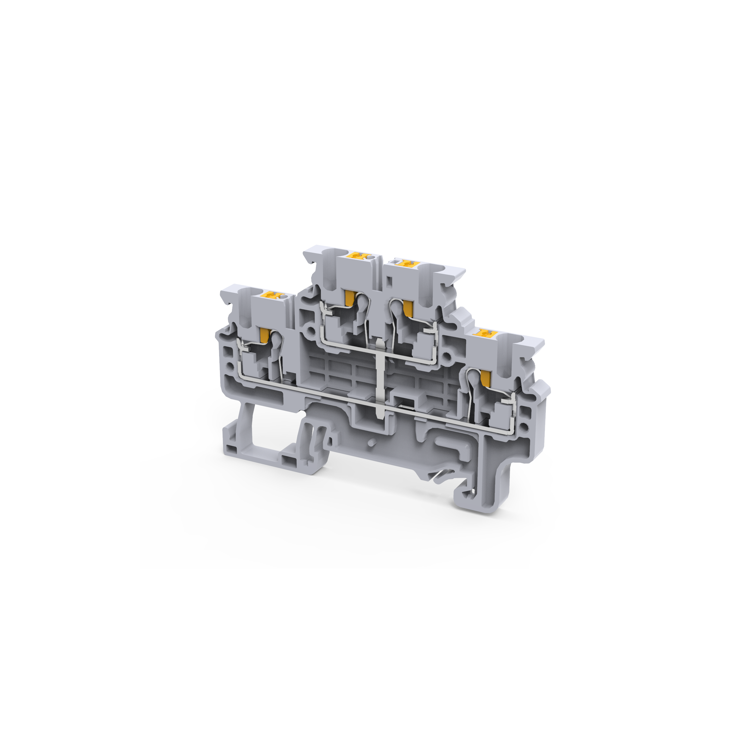 <p>Spring clamps are essential components in the electrical engineering and automation sectors, valued for their reliability and efficiency. This spring clamp is designed with precision to meet stringent industrial standards, offering a robust solution for secure wiring connections.</p><p>With a rated current of 20 A and a rated voltage of 600 V, this spring clamp is well-suited for various commercial and industrial applications. Its compact dimensions—5 mm in width and 49.55 mm in height—make it an ideal choice where space-saving is crucial without compromising on performance.</p><p>The device&#39;s housing is crafted from durable polyamide, which ensures longevity even under demanding conditions. It boasts an IP66 degree of protection, making it resistant to dust ingress and powerful water jets—a testament to its rugged design suitable for harsh environments.</p><p>One of the standout features is its compatibility with DIN 35 mounting types, facilitating easy integration into existing systems or new installations. The terminal type being a spring clamp allows for quick and tool-free connection processes, enhancing efficiency during setup or maintenance activities.</p><p>For those working with varied wire sizes, this product supports a cable cross-section range from 0.2 to 1.5 sq-mm, accommodating diverse wiring needs effortlessly. Additionally, the recommended wire stripping length of 10 mm ensures optimal contact within the terminal block.</p><p>In terms of safety parameters, this spring clamp offers a degree of pollution rating at IP3 and can withstand rated surge voltages up to 8 kV—features that enhance operational safety by minimizing risks associated with electrical surges or environmental contaminants.</p><p>The grey color provides a neutral aesthetic that blends seamlessly into most setups while also aiding visibility during installation or inspections. Measuring at a length of 72.7 mm, it strikes an excellent balance between size and functionality.</p><p>This spring clamp represents a dependable choice for professionals seeking reliable performance in their electrical systems while ensuring ease of use across various applications.</p>
