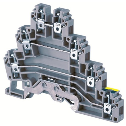 <p>When you’re in the market for a reliable and efficient triple-level terminal block, this product stands out with its robust design and technical specifications. Designed for industrial and commercial applications, it offers a solid combination of performance and practicality.</p><p>The terminal block supports a rated current of 24 A and accommodates voltages up to 440 V, making it suitable for various electrical installations. The product&#39;s IP3 degree of pollution rating ensures that it can withstand moderately harsh environments typically found in industrial settings.</p><p>With dimensions tailored for space efficiency, the terminal block measures just 6 mm in width and 87.5 mm in length. This compact size allows for easy integration into existing systems without compromising on functionality or safety. The housing is constructed from durable polyamide material, known for its excellent insulating properties and resistance to environmental factors.</p><p>Installation is straightforward with the DIN rail mounting type, which provides secure attachment while allowing flexibility during setup or maintenance operations. The screw clamp terminal type ensures reliable connections with minimal effort required during assembly.</p><p>For wiring versatility, this product accommodates cable cross sections ranging from 0.2 to 2.5 square millimeters. This range covers a wide array of wire sizes commonly used in electrical installations, ensuring compatibility with your current system.</p><p>A key feature is the tightening torque specification of 0.4 N-m using an M2.5 screw size—details that provide assurance when securing wires within the terminals to prevent accidental disconnections under operational conditions.</p><p>The triple-level function further enhances its utility by offering additional connection points within a single unit footprint—ideal for complex circuit configurations where space conservation is critical without sacrificing connectivity options.</p><p>Available in grey, green, and yellow colors, these blocks offer visual differentiation which can aid in organizing complex wiring setups or adhering to specific color-coding standards within your projects.</p><p>Overall, this triple-level terminal block delivers dependable performance backed by precise engineering suitable for demanding environments where reliability cannot be compromised—a choice worth considering if you require quality components that meet stringent technical requirements efficiently.</p>