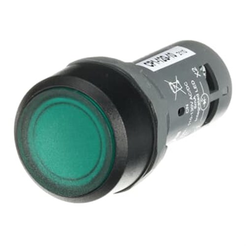 Description: ABB CP1-12G-10 Compact Illuminated Pushbutton Flush Momentary Green 110-130VAC/DC 1NO Screw