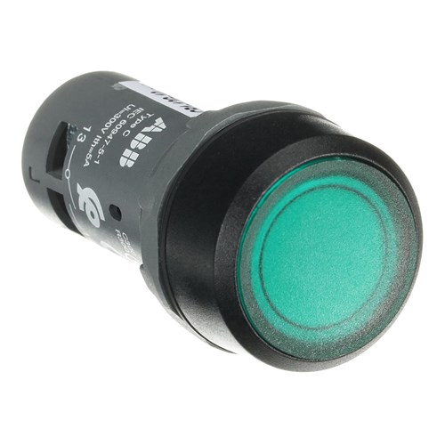 DescriptionDB: ABB CP1-12G-10 Compact Illuminated Pushbutton Flush Momentary Green 110-130VAC/DC 1NO Screw