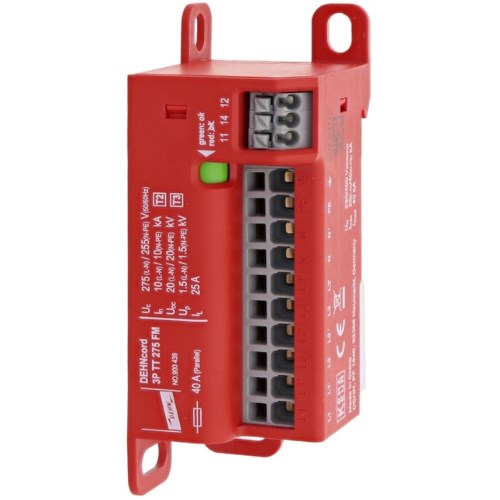 <p>When it comes to safeguarding your electrical systems, the right surge protection device (SPD) is crucial. Designed for industrial and commercial applications, this SPD offers robust protection with a rated voltage of 230 V and a rated current of 25 A, making it suitable for various demanding environments.</p><p>This device operates on a three-phase system, ensuring comprehensive coverage across all phases. With an IP20 degree of protection, it’s ideal for indoor installations where dust ingress is minimal. Its compact dimensions—36 mm in width, 94 mm in height, and 39.5 mm in depth—make it perfect for space-constrained setups without compromising performance.</p><p>The SPD mounts effortlessly onto a DIN rail, simplifying installation and maintenance tasks. Weighing just 105 grams, it&#39;s lightweight yet durable enough to withstand the rigors of industrial use. The thermoplastic material construction adds to its robustness while maintaining safety standards.</p><p>In terms of performance standards and approvals, this device meets KEMA certification requirements, ensuring reliability and adherence to industry benchmarks. Its response time is impressively swift at 25 ns between line and neutral (L-N) connections and 100 ns between line/neutral and protective earth (L/N-PE), providing quick reaction times against surges.</p><p>The interrupt rating stands at both 25 A and an enhanced capacity of up to 40 A. This flexibility ensures that the SPD can handle unexpected spikes efficiently without faltering under pressure. It accommodates cross-sections ranging from 0.2 to 6 square millimeters for both solid and flexible wiring types.</p><p>With a voltage protection level capped at &lt;=1.5 kV for L-N as well as N-PE connections, this device assures low let-through voltages during surge events—a critical factor in protecting sensitive equipment downstream.</p><p>Its lightning current carrying capability is substantial at 100 kArms specifically through the N-PE path—a testament to its robustness when faced with high-energy transients typically associated with lightning strikes.</p><p>Classified as Type 2/Type II as well as Type 3/Class III SPD according to IEC standards, this product provides layered defense against transient overvoltages originating from indirect lightning strikes or switching operations within the facility&#39;s power network.</p><p>Overall, this surge protection device offers reliable performance backed by stringent testing certifications while being easy to install thanks to its DIN rail mounting design—all essential factors that technical audiences consider when evaluating SPDs for their projects.</p>