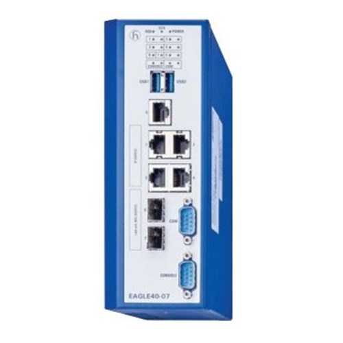 <p>The EAGLE40 Series Industrial Router is a robust and reliable solution for industrial and commercial environments that demand consistent network connectivity. Designed to withstand the rigors of demanding settings, this router offers a solid build with its sheet metal construction, ensuring durability and longevity.</p><p>One of the standout features of the EAGLE40 is its dual-rated voltage capability, supporting both 24 VDC and 48 VDC power inputs. This flexibility allows it to integrate seamlessly into various electrical systems without requiring additional converters or adjustments. The DIN rail mounting type further simplifies installation, making it an ideal choice for space-constrained environments where efficient use of available room is crucial.</p><p>Measuring at 177 mm in width, 125.8 mm in height, and 70 mm in depth, the compact design of the EAGLE40 does not compromise on performance. It supports five Gigabit Ethernet (GbE) RJ45 ports alongside two GbE SFP ports for fiber optic connections. This range of communication options ensures high-speed data transfer rates necessary for modern industrial applications.</p><p>Engineered to operate within a wide temperature range from -40 to 70 degrees Celsius, this router can be deployed in diverse climatic conditions without affecting performance. Its IP40 degree of protection indicates resistance against solid objects over 1mm but requires careful consideration regarding moisture exposure during installation.</p><p>Compliance with CE, FCC, and EN62368 standards underscores its commitment to safety and quality assurance—a critical factor for industries adhering to stringent regulatory requirements.</p><p>In conclusion, the EAGLE40 Series Industrial Router combines versatility with reliability through its thoughtful design tailored specifically for industrial needs. Whether your focus is on enhancing network infrastructure or upgrading existing systems with minimal disruption, this router provides an effective solution backed by recognized standards approvals.</p>
