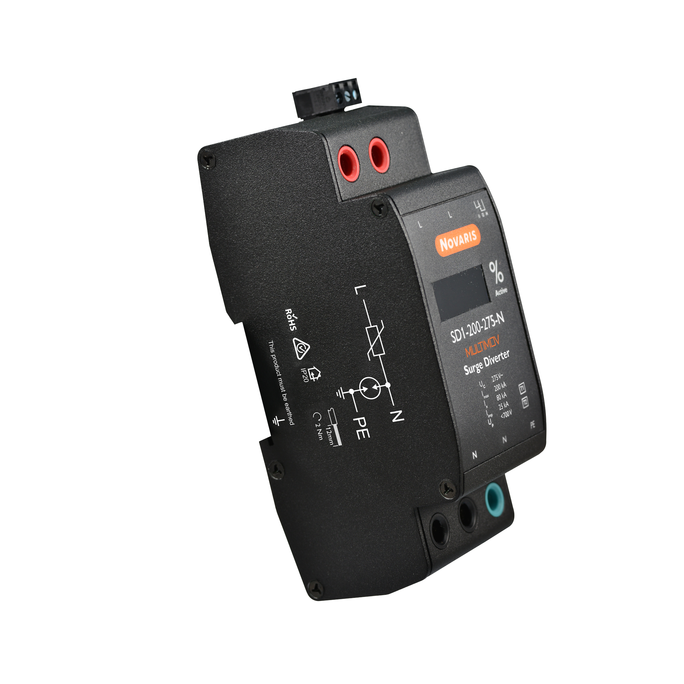<p>When it comes to safeguarding your electrical systems, this Surge Protection Device stands out with its robust specifications and compliance with international standards. Designed for industrial and commercial use, this device ensures the safety of your installations by efficiently managing overvoltage conditions.</p><p>At the core of its functionality is a rated voltage capacity of 230 VAC, making it suitable for single-phase applications. It effectively handles a rated current of 200 kA between Line to Neutral (L-N) and 150 kA from Neutral to Protective Earth (N-PE), ensuring comprehensive protection against surges.</p><p>The digital display allows for easy monitoring and diagnostics, offering real-time insights into the device&#39;s status. With a shunt connection type, installation is straightforward on a TS35 DIN Rail, which is convenient in various electrical setups. The compact dimensions—54 mm width, 69 mm height, and 141 mm depth—ensure that it fits seamlessly into existing panels without occupying excessive space.</p><p>This surge protection device boasts an impressive degree of protection at IP20, indicating adequate protection against solid objects larger than 12mm like fingers or similar objects but requires installation in appropriate enclosures for full environmental protection. Its operational temperature range from -40 to 70 degrees Celsius makes it adaptable to diverse climatic conditions typical in Australia.</p><p>Crafted from durable aluminium material weighing just 565 grams, it&#39;s both lightweight and sturdy. The device responds swiftly with response times less than 25 nanoseconds (ns) L-N and under 100 ns N-PE—critical in minimizing downtime during transient events.</p><p>Conforming to key industry standards such as IEC 61643-11:2011, AS/NZS 1768:2007, UL 1449 Third Edition, and IEEE Standard C62.41.2:2002 assures users of its reliability and performance integrity across different scenarios.</p><p>With humidity tolerance ranging from five percent up to ninety-five percent non-condensing environments are well within its operating capabilities. Installation requires attention to tightening torques set at either point five Newton-meters or two Newton-meters based on specific connections involved while maintaining an interrupt rating alongside fuse rating each capped at one hundred amperes respectively provides added safety measures during fault conditions should they arise unexpectedly</p><p>Further enhancing protective features include SPDT contact configuration accommodating various switching needs along with voltage levels maintained below seven hundred volts L-N protecting sensitive equipment downstream effectively Modes supported encompass both L-N &amp; N-PE pathways handling lightning impulse currents twenty-five kiloamperes versus thirty kiloamperes respectively ensuring resilience amidst adverse weather patterns common throughout regions nationwide</p><p>All these elements combined present an ideal solution when considering surge suppression requirements where reliability durability efficiency paramount concerns rest assured knowing system defenses fortified using technologically advanced components designed withstand even harshest electrical disturbances encountered today</p>