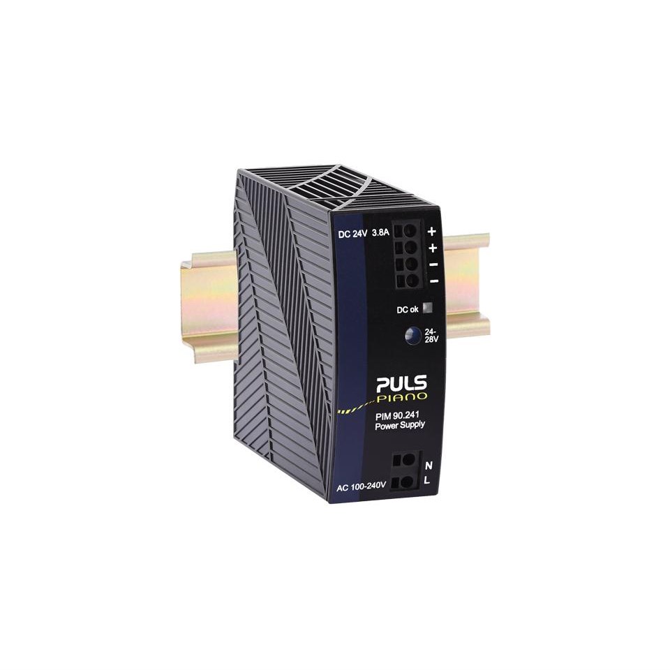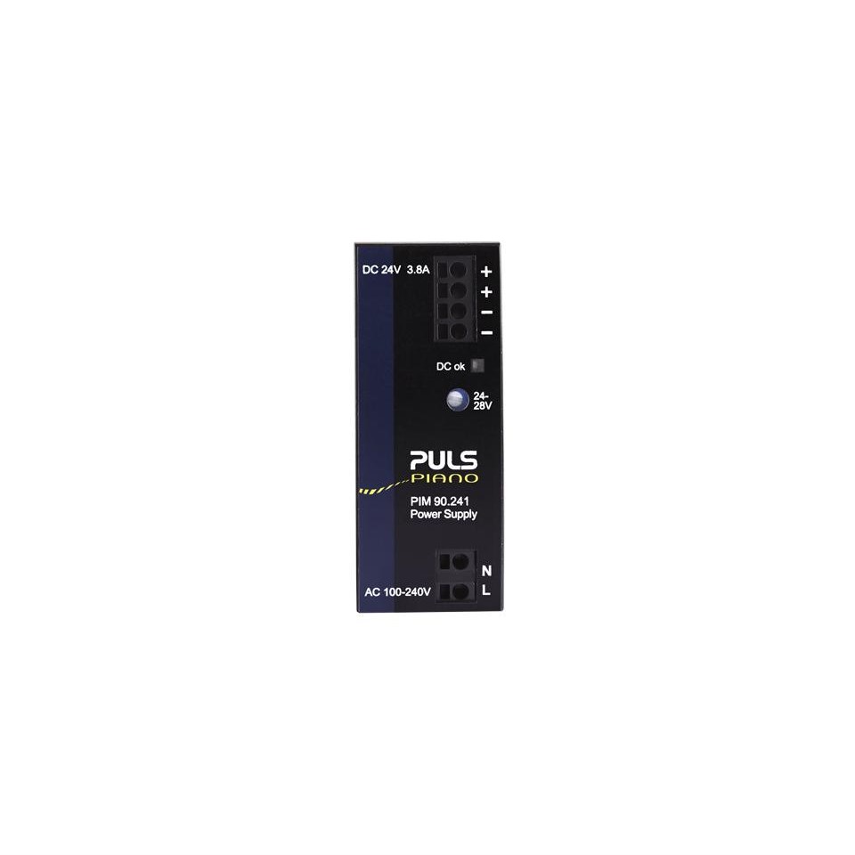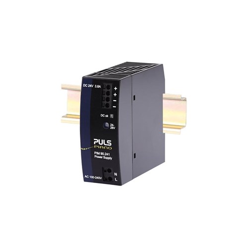 <p>The PIANO Series Single-Phase Power Supply is a robust solution designed for industrial and commercial applications. With a rated current of 3.8 A and an impressive efficiency of 93.8%, it ensures reliable performance while minimizing energy loss. The device operates within a wide input voltage range of 100-240 VAC or 24 VDC, making it versatile for various setups.</p><p>Constructed with practicality in mind, this power supply measures 36 mm in width, 90 mm in height, and 91 mm in depth, allowing for easy integration into compact spaces via its DIN Rail mounting type. Despite its compact size, it provides a substantial rated power output of 90 W with minimal power loss pegged at just 6 W.</p><p>A key feature of this product is its adherence to rigorous safety standards and approvals such as the EU Declaration of Conformity and several IEC standards including IEC 61010-2-201 CB Scheme and IEC 62368-1 CB Scheme. It also meets UL standards for both Canada and the USA as well as the UK Declaration of Conformity, ensuring compliance with international safety protocols.</p><p>For ease of use, the connection type is plug-in which simplifies installation processes. The degree of protection offered by this unit is IP20, suitable for environments where basic protection against dust ingress is sufficient.</p><p>In terms of performance metrics like ripple and noise voltage, this model maintains low levels at just 100 mVpp which contributes to stable operation across different loads. The device handles inrush currents efficiently with limitations set by NTC thermistors to manage peaks up to either 18 A or even higher at times reaching up to 40 A.</p><p>The derating temperature specification stands at a manageable rate of 2.4 W/deg C ensuring that thermal management remains straightforward under varying operating conditions.</p><p>Weighing only 270 grams yet packed with features from the PIM series collection within the Piano range this power supply offers reliability without compromising on quality or functionality making it an ideal choice for professionals seeking dependable solutions backed by thorough standardizations.</p>