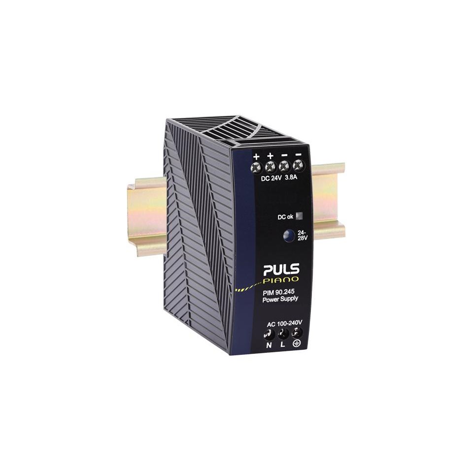 <p>The PIANO Series Single-Phase Power Supply is a robust and efficient solution designed to meet the demanding needs of industrial and commercial applications. With its compact dimensions of 36 mm in width, 90 mm in height, and 91 mm in depth, this power supply fits seamlessly into tight spaces while delivering reliable performance.</p><p>Operating at a rated current of 3.8 A and accommodating a wide input voltage range from 100-240 VAC or 24 VDC, it offers flexibility for various operational environments. The unit boasts an impressive efficiency rating of 93.8%, ensuring minimal energy loss during operation. This high efficiency is complemented by a low power loss of just 6 W, making it an energy-conscious choice for businesses looking to optimize their power usage.</p><p>The PIANO Series features a DIN rail mounting type for easy installation and maintenance within control panels or enclosures. Its screw terminal connection type ensures secure wiring connections, enhancing operational reliability over time. Additionally, with an IP20 degree of protection, this device is safeguarded against solid objects larger than 12mm but should be used in controlled environments where exposure to moisture is limited.</p><p>Safety and compliance are critical aspects addressed by this product&#39;s adherence to multiple international standards including IEC 61010-2-201 CB Scheme, IEC 62368-1 CB Scheme, UL certifications for both the USA and Canada (UL 61010-2-201), as well as EU and UK Declarations of Conformity. These certifications underscore its suitability for global markets while ensuring adherence to rigorous safety protocols.</p><p>In terms of electrical characteristics, the power supply handles ripple and noise voltage up to 100 mVpp—a feature that supports stable output crucial for sensitive equipment. The device also includes an NTC-based inrush current limitation system capable of handling currents between 18 A to a peak of 40 A during startup phases without compromising performance or longevity.</p><p>Another notable feature is its hold-up time of approximately 119 ms which provides sufficient buffer during short interruptions or fluctuations in input power—vital for maintaining continuous operations in critical systems.</p><p>Weighing only 270 g yet packed with advanced features like derating temperature management at a rate of -2.4 W/&#176;C above specified thresholds; this model ensures consistent operation even under varying environmental conditions typically encountered across different industrial settings.</p><p>Overall, the PIANO Series Single-Phase Power Supply stands out as an efficient powerhouse engineered for durability and versatility across diverse technical landscapes—making it an ideal choice when precision meets practicality.</p>