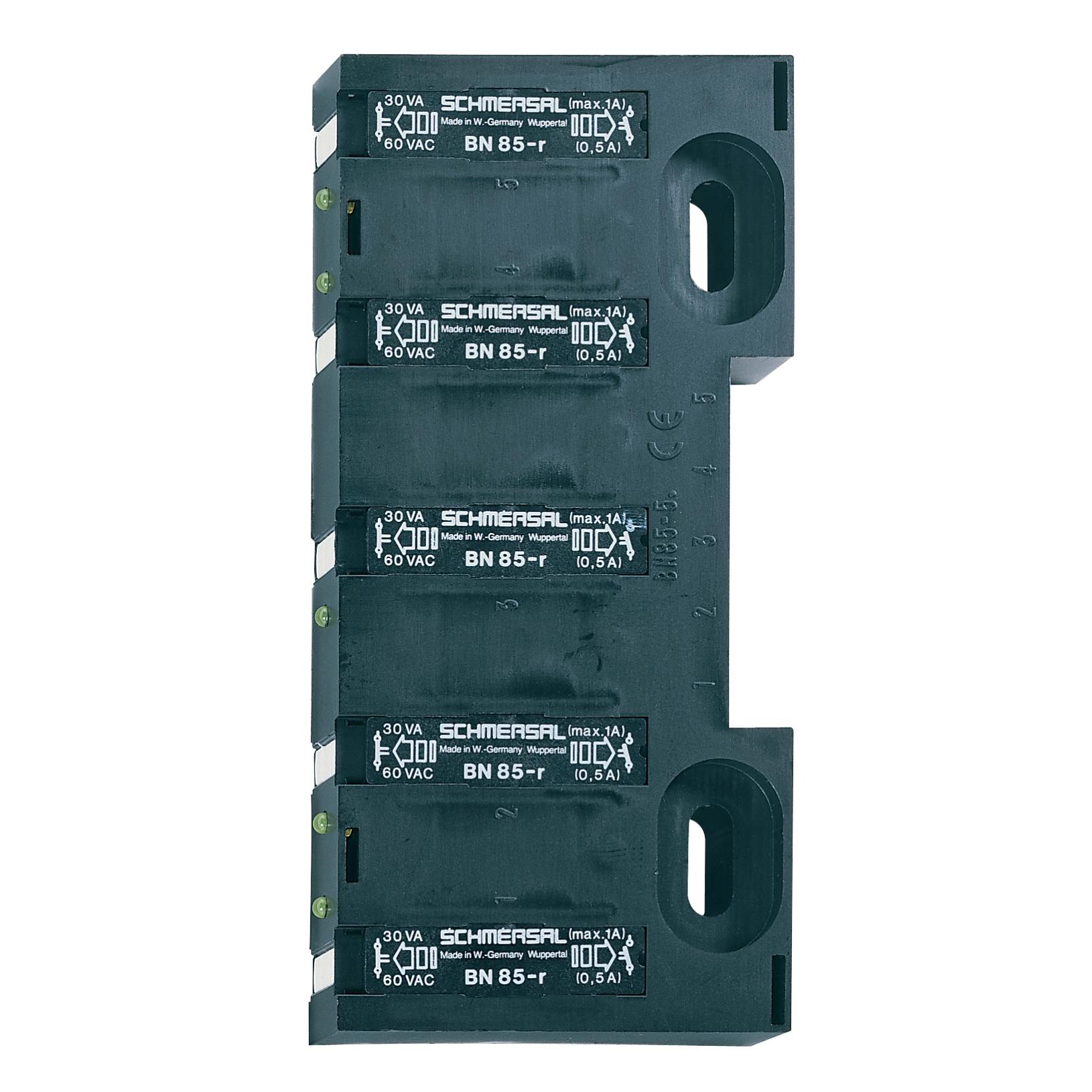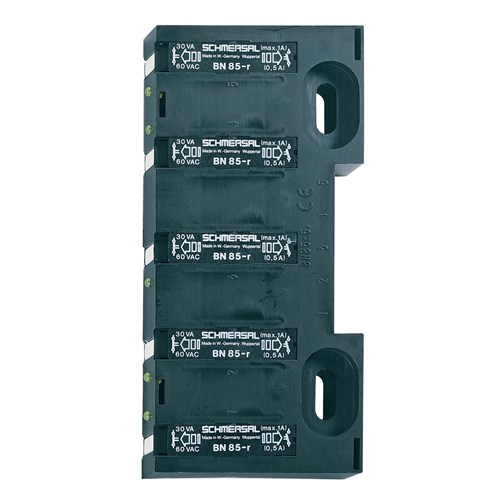 <p>Explore the Schmersal BN 85 Series Magnetic Reed Switch, designed for precision and durability. This switch features a robust thermoplastic enclosure with a rectangular shape, ensuring long-lasting performance in various applications. It comes equipped with a 10-pole terminal connector for easy integration into your system.</p><p>The switch offers front actuation with a bistable contact element, allowing for reliable operation within an actuation distance range of 2 mm to 40 mm. Engineered to handle switching voltages from 12 to 60 VDC and currents up to 1 A, it boasts a maximum switching capacity of 30 VA.</p><p>This model includes five reed contacts for enhanced functionality. Please note that actuators are not included and must be purchased separately. Installation is made simple with an enclosure featuring mounting slots, facilitating secure placement in your setup.</p><p>Operating within a temperature range of -10&#176;C to 75&#176;C and rated at IP30, the Schmersal BN 85 Series is built for resilience in diverse environments. Ideal for engineers seeking reliable position sensors, this magnetic reed switch balances performance with longevity.</p>