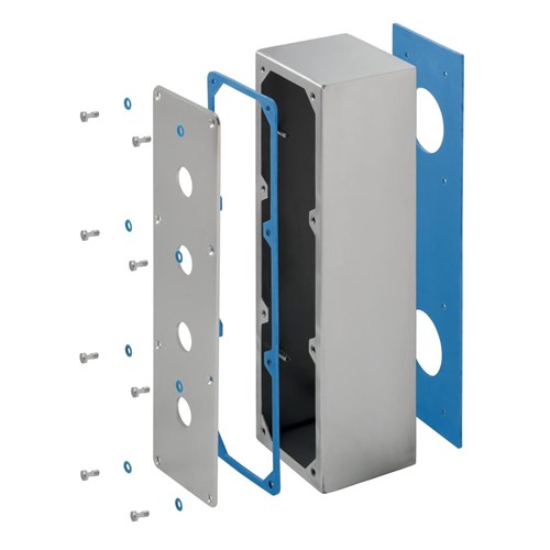 <p>This stainless steel accessory is designed for industrial and commercial applications where durability and protection are paramount. With its robust construction, this product offers an impressive degree of protection rated at IP67 and IP69K, ensuring it can withstand the harshest environments, including exposure to dust, high-pressure water jets, and even temporary submersion.</p><p>Measuring 100 mm in width, 94 mm in height, and extending to a depth of 315 mm, this accessory is compact yet substantial enough to meet demanding operational needs. Its weight of 2130 grams speaks to its solid build quality, making it a reliable choice for various installations.</p><p>The operational temperature range from -25&#176;C to 80&#176;C allows this accessory to function efficiently across diverse climates and conditions. Whether it&#39;s the cold of winter or the heat of summer, you can count on consistent performance without compromise.</p><p>For those concerned with compliance and standards, this product meets several key certifications: eCl@ss Version 11.0 (27-37-12-05) and Version 9.0 (27-37-12-05), along with ETIM classifications EC000200 for both versions 6.0 and 7.0. These approvals assure users that the product adheres to industry norms for quality and safety.</p><p>Additionally, the gland hole size is precisely set at 20.3 mm—a detail that ensures compatibility with standard fittings while maintaining a secure seal against environmental ingress.</p><p>Overall, this stainless steel accessory stands out as a dependable component suitable for rigorous applications requiring high levels of protection against environmental factors while also offering ease of integration into existing systems thanks to its standardized dimensions and compliance credentials.</p>